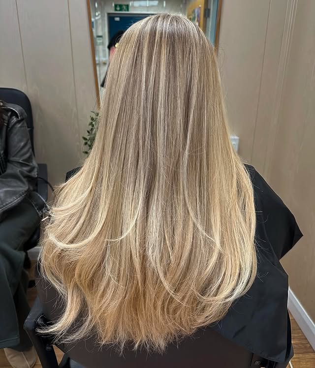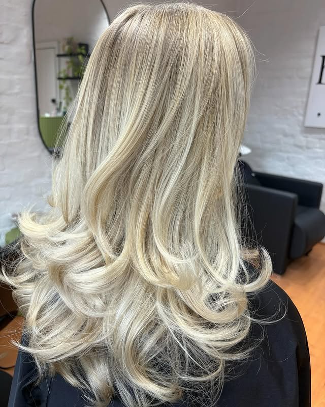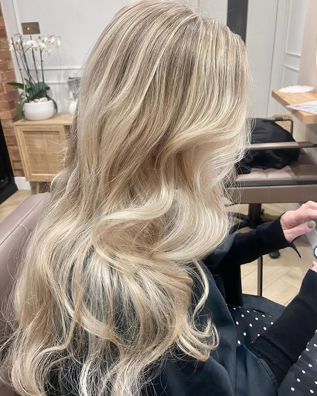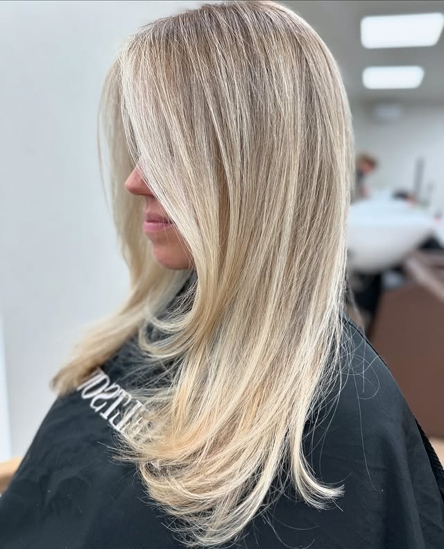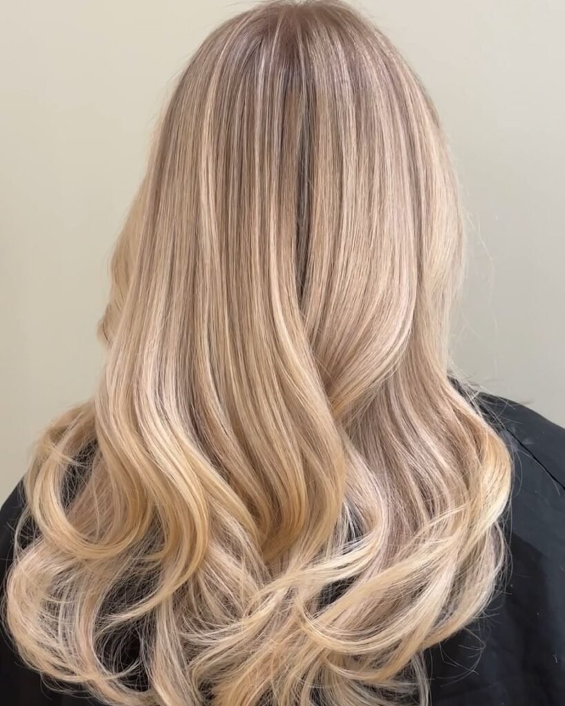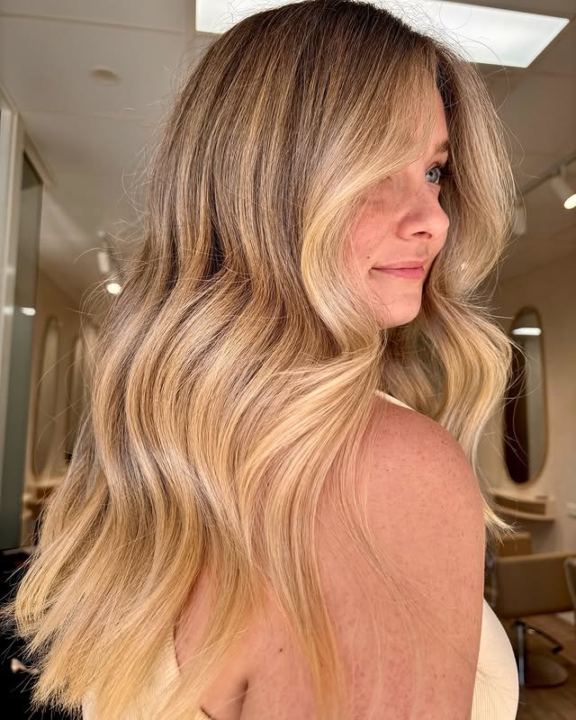 This style uses warm creamy blonde shades to add richness and depth, creating a soft, golden glow that’s flattering and timeless.