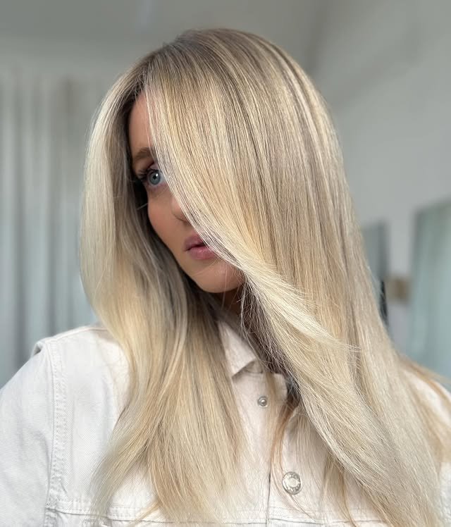 27. Sleek Creamy Blonde Hair Look