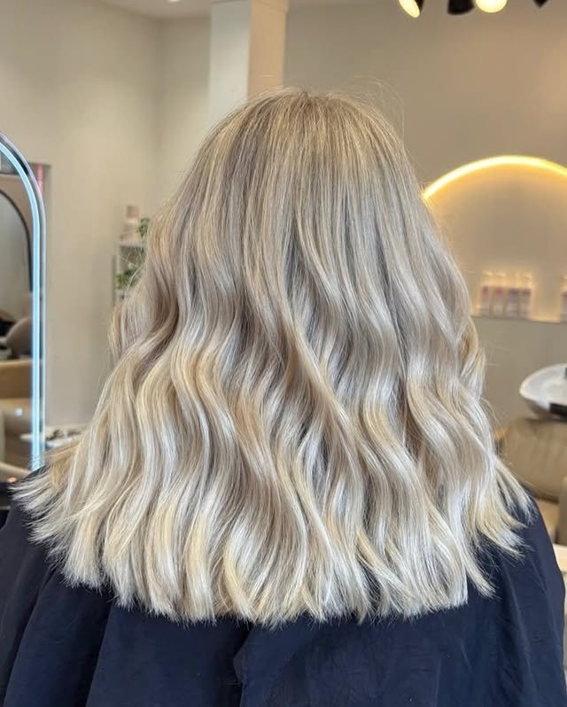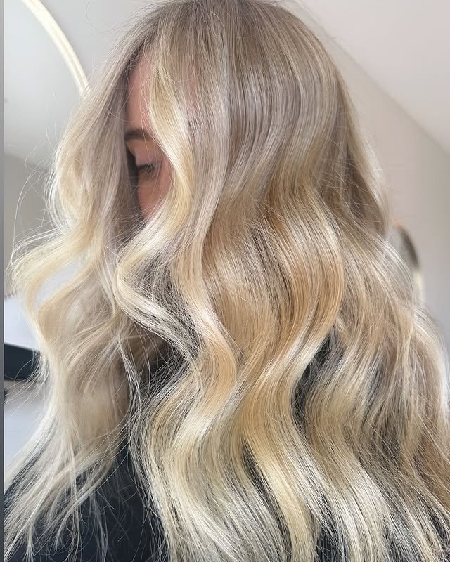 A hint of ashy undertones gives this creamy blonde hair a cooler twist, creating an elegant and slightly muted finish.