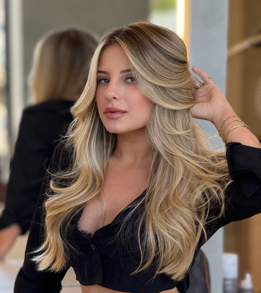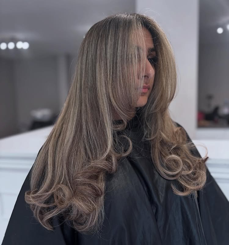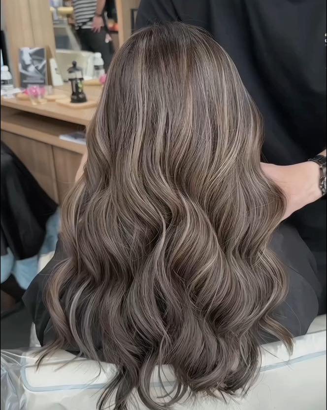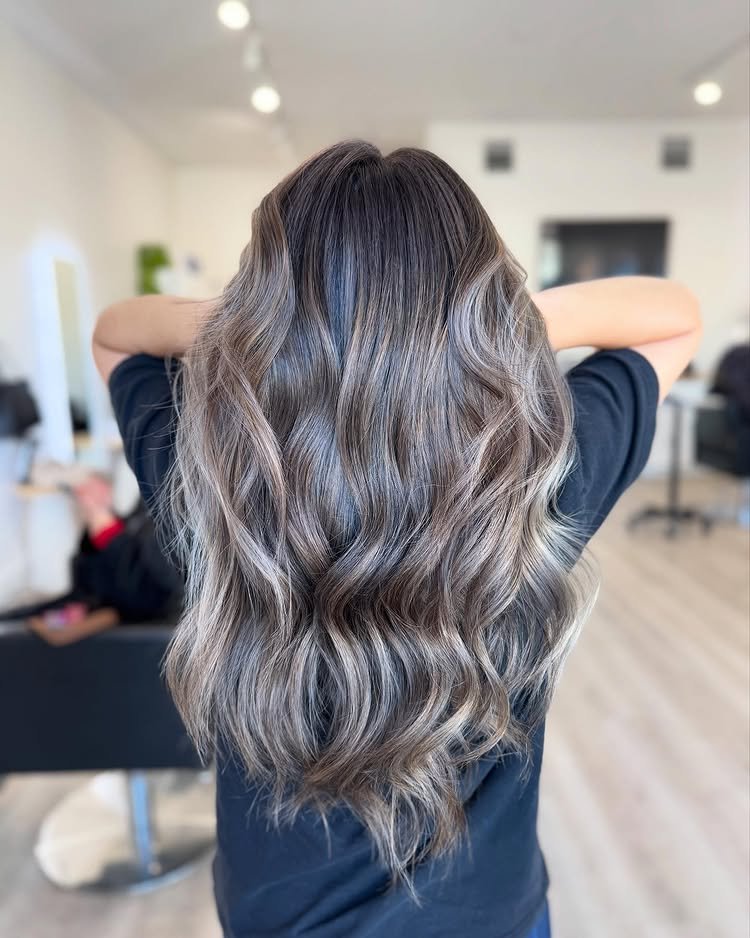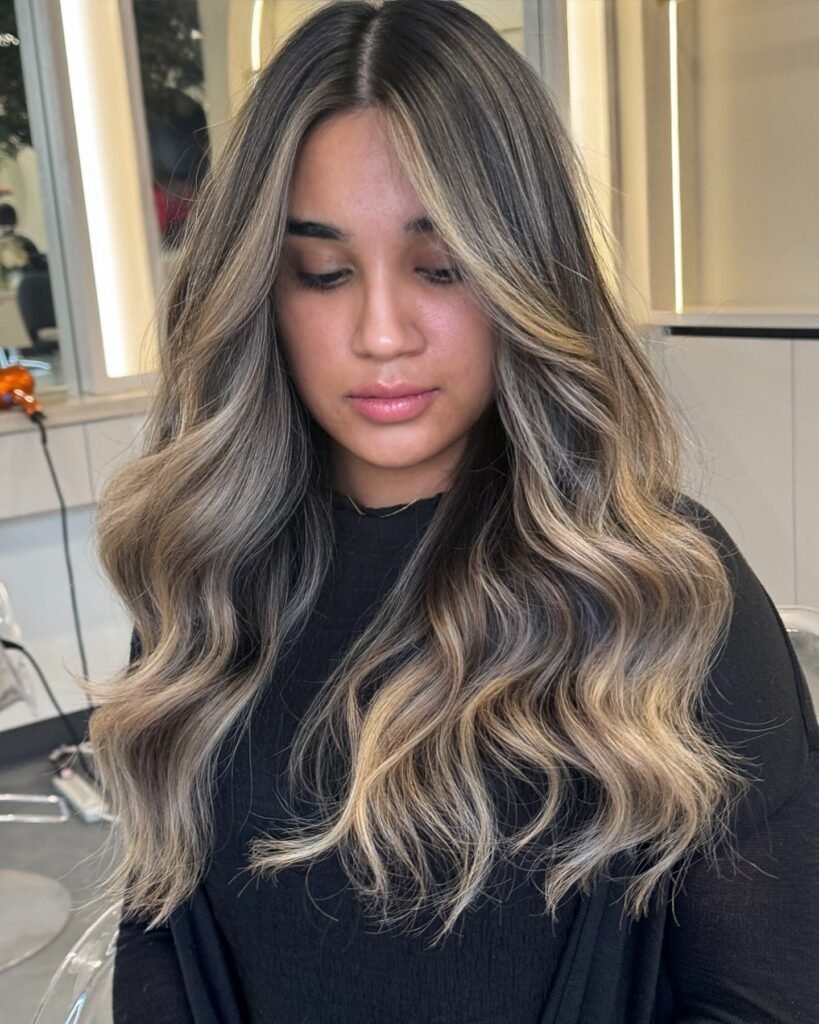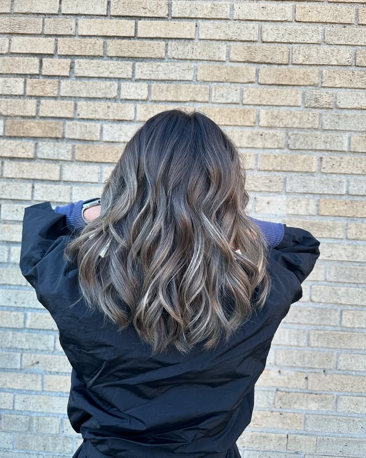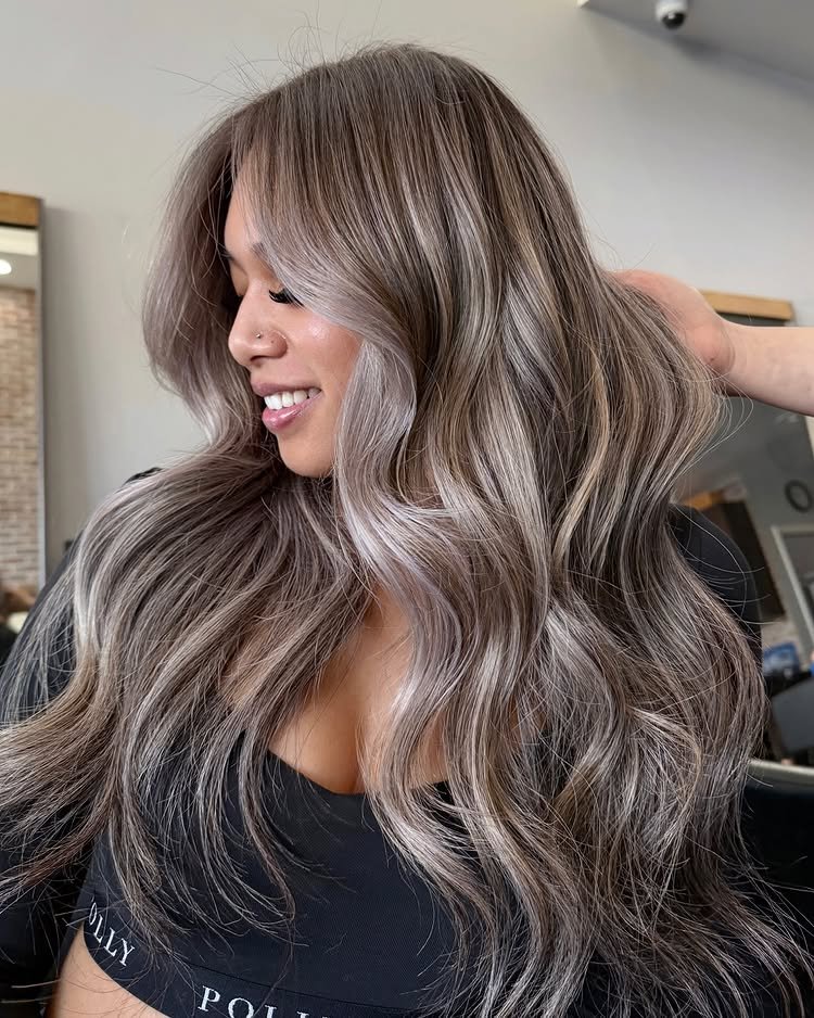 This balayage style blends ash blonde highlights seamlessly. It adds natural lightness while remaining cool and classy. Great for a low-maintenance, grown-out look.