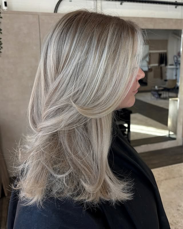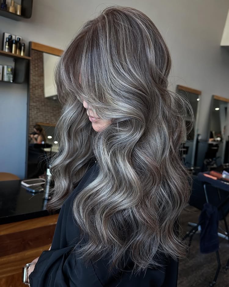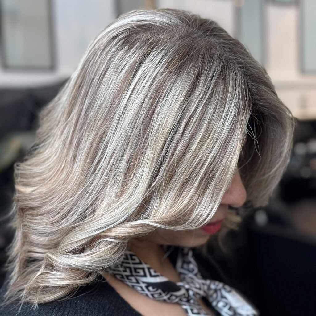 This medium-length cut pairs beautifully with smoky ash tones. It creates an elegant, understated effect that feels fresh. Best for those wanting a soft, modern update.