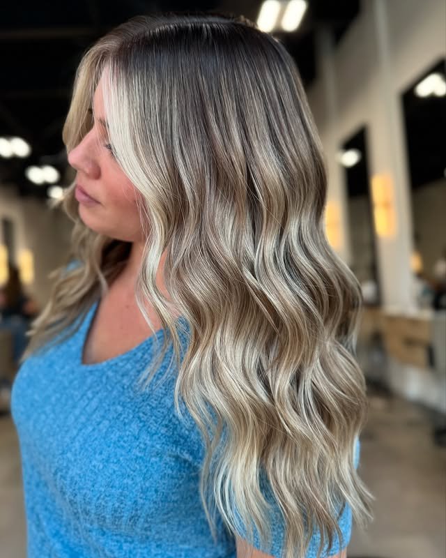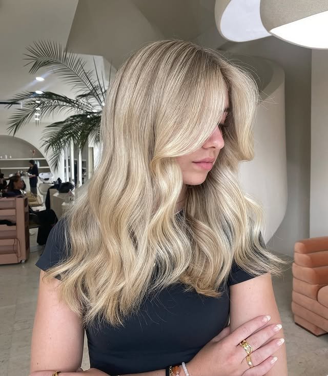 Blonde balayage applied to face-framing layers offers a seamless, sun-kissed effect. Combined with long, flowing hair, it creates a relaxed and effortless vibe. Ideal for a subtle transition.