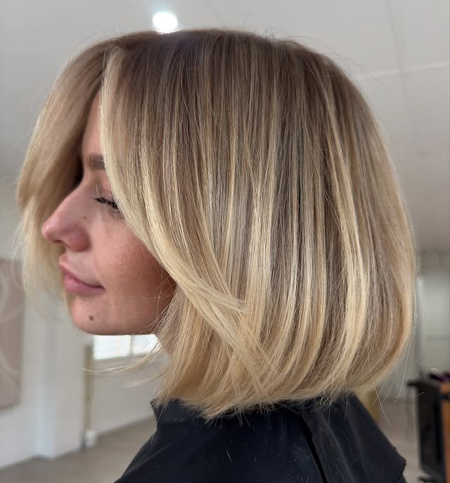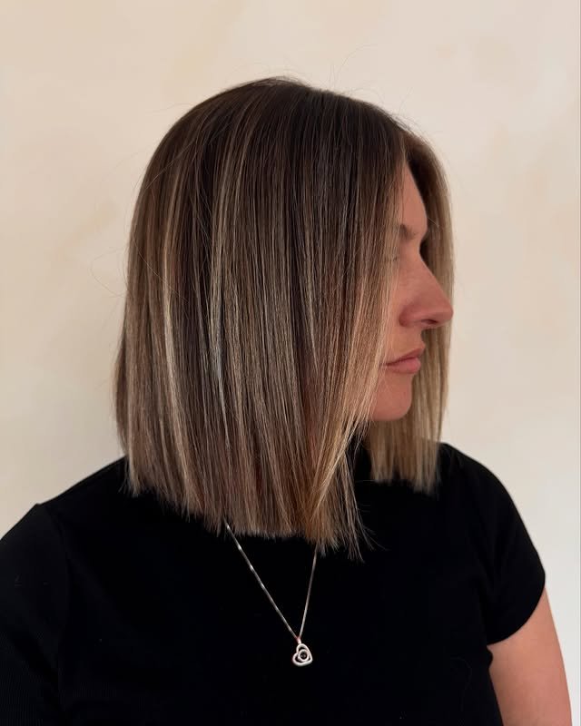 This chin-length bob frames the face beautifully and keeps things light. It’s great for women who want a flattering, simple cut. Refreshing and youthful.