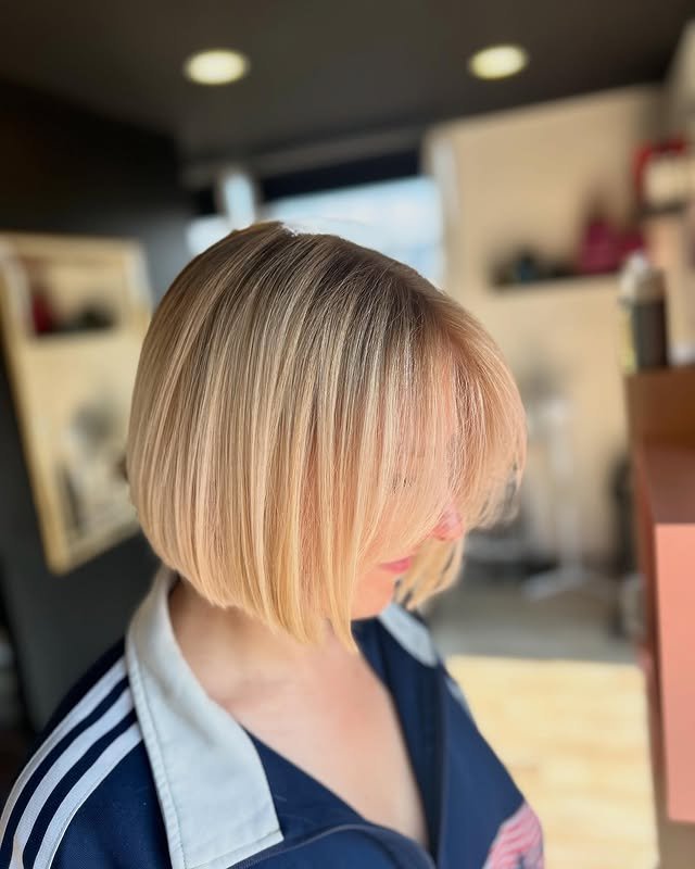Sharp edges and a straight-across cut define this blunt bob hair look. It gives a bold, sleek appearance with minimal layering. Great for making a confident statement.