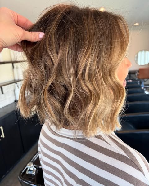 Soft waves bring life and movement to this trendy bob haircut. The texture adds dimension and charm. Perfect for a relaxed yet stylish vibe.