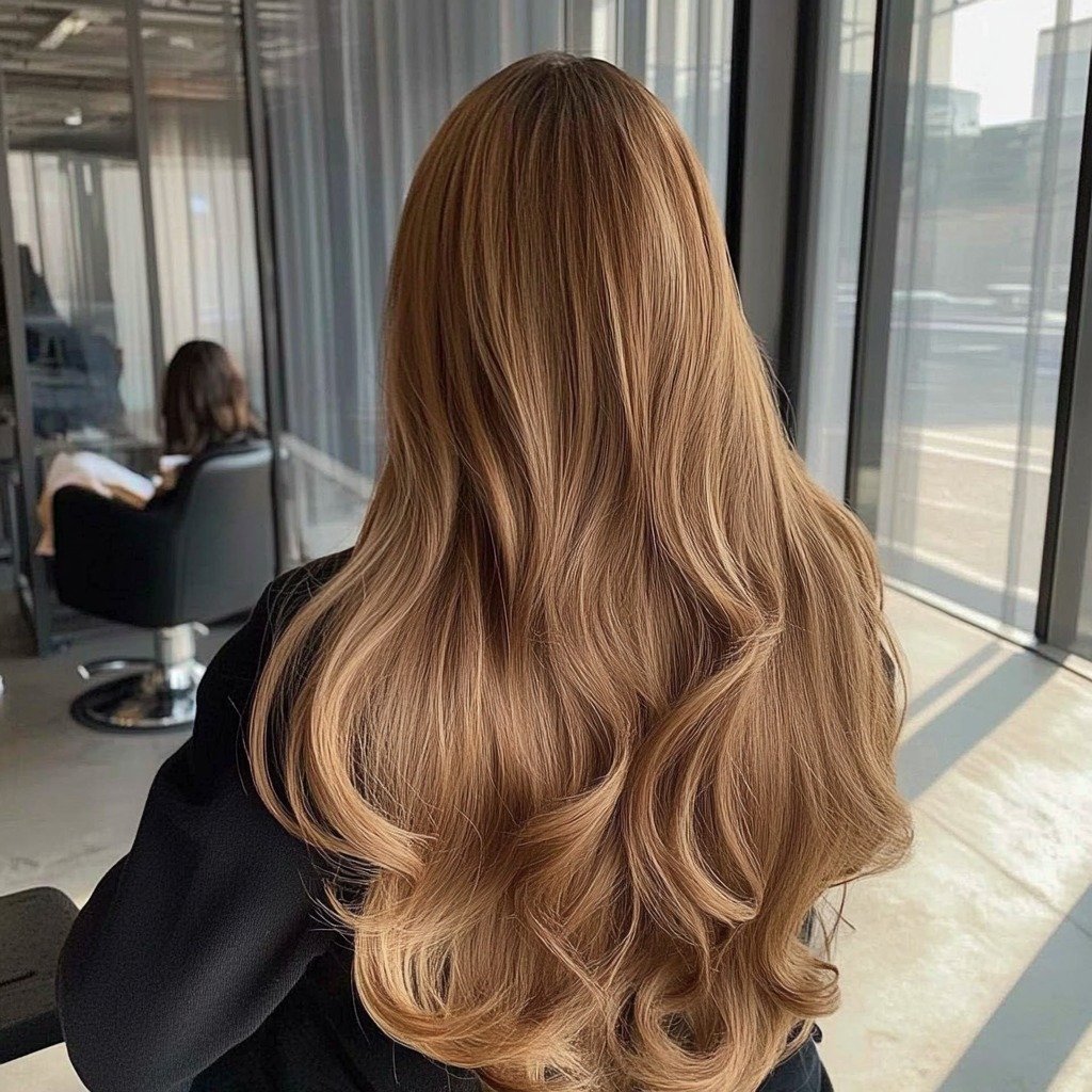 Toffee-colored ombre adds golden warmth to brown hair, giving it a radiant, sunlit effect. The color softly frames the face and enhances natural movement. A sweet, glowing option for a hair refresh.