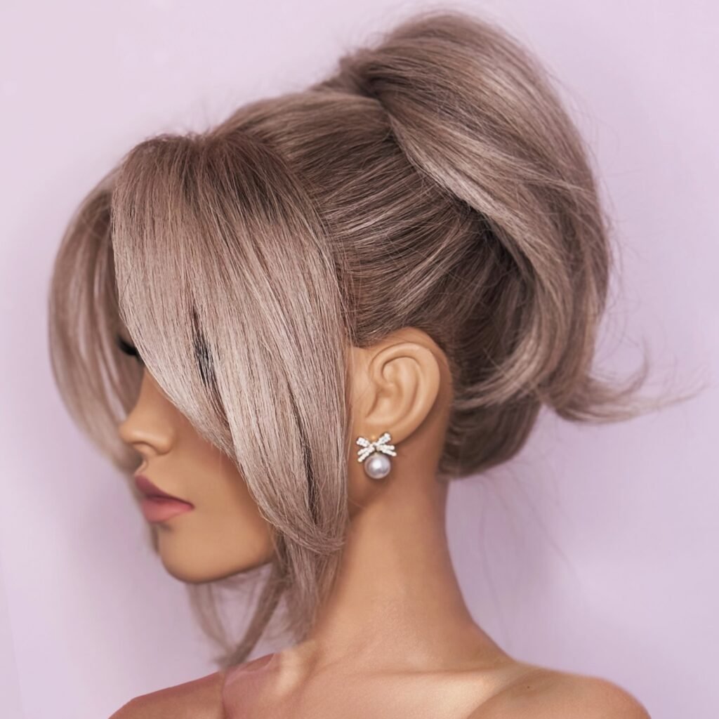 This side-swept curl look adds a romantic and graceful twist to medium-length hair. It’s perfect for candlelit events, offering volume and softness that frames the face beautifully.