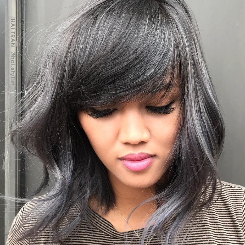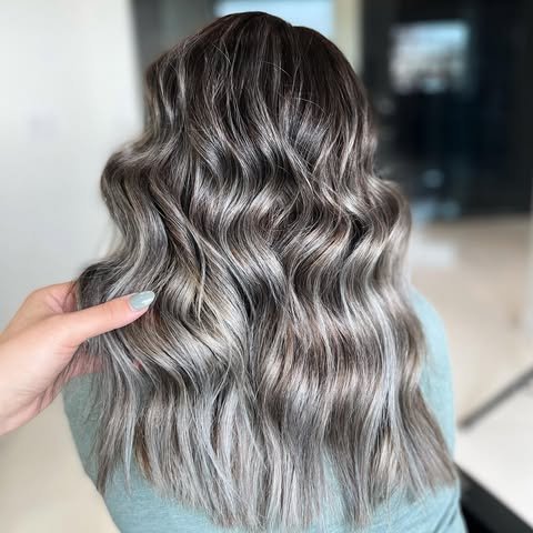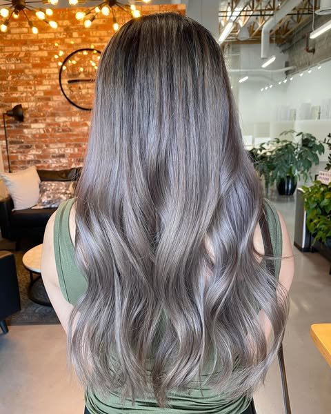 This balayage technique fades silver through the lengths for a seamless transition. It’s a natural way to wear metallics with dimension and softness. A chic and versatile option.