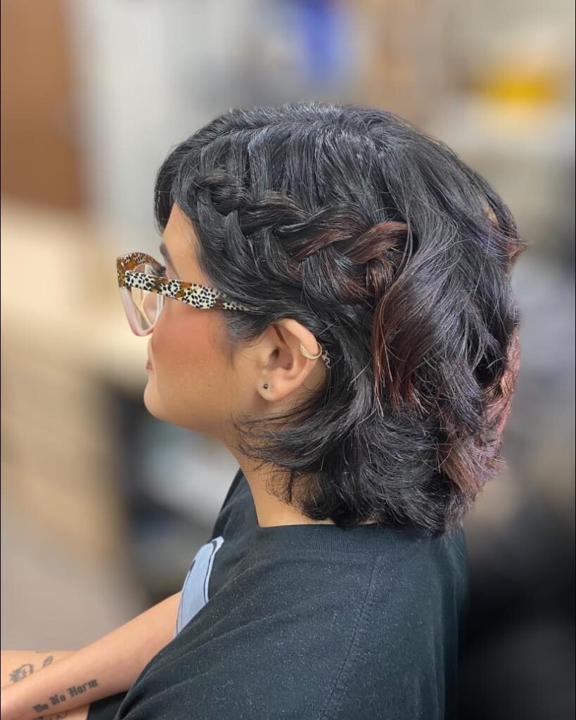 A small braid along the hairline gives your short style a creative edge. It’s a fun way to mix things up without much effort.